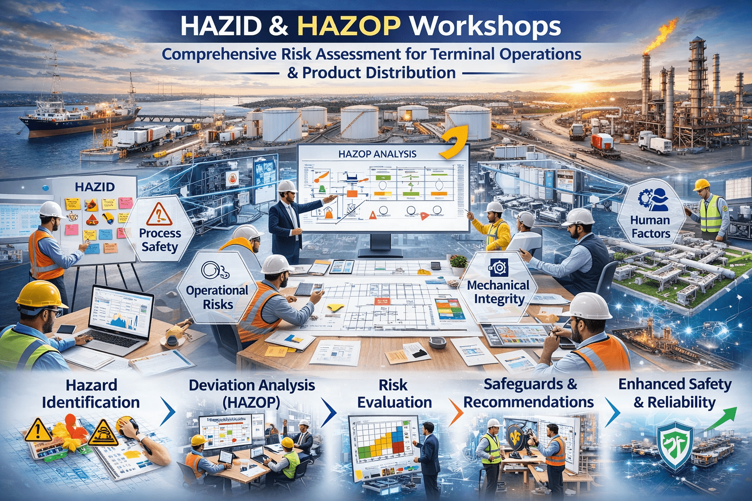 • Hazard identification (HAZID) and Hazard & Operability Studies (HAZOP)