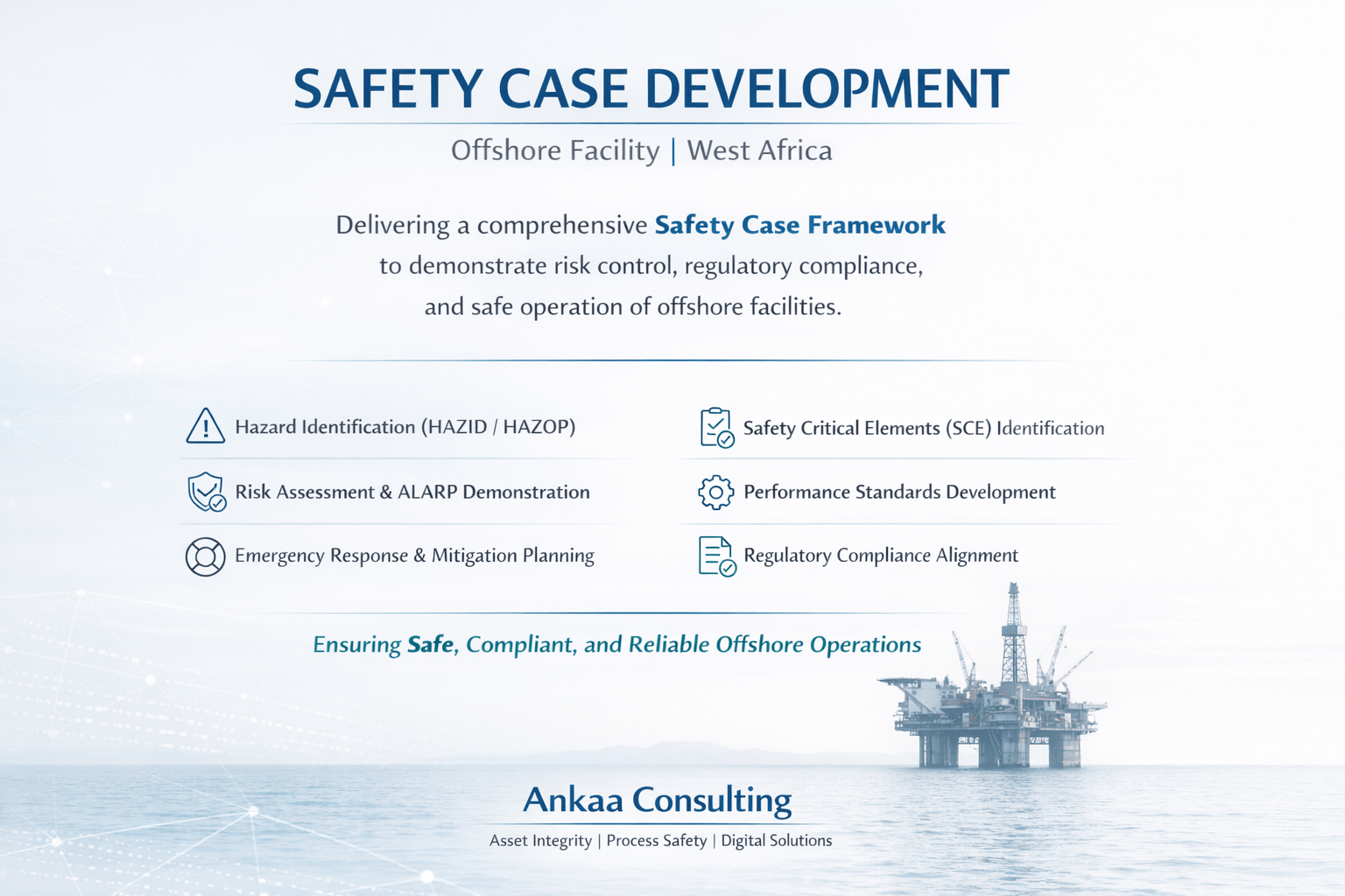 Ankaa Consulting offers a comprehensive portfolio of services that combine technical depth with cross-industry breadth. Leveraging our proprietary technologies, operational experience, and specialist expertise, we deliver solutions that enhance asset performance, integrity, and safety. Our core service segments include: